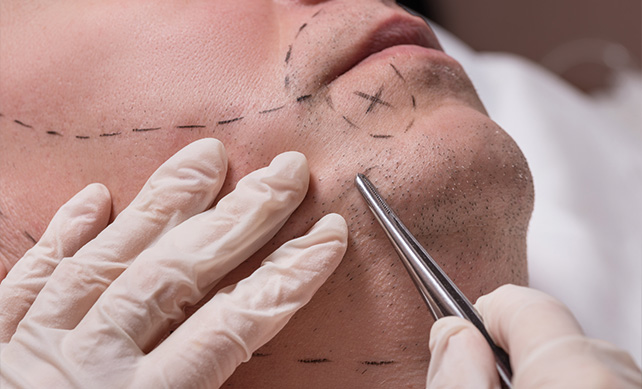 - Clinical examination: At this stage, the density of the donor area and the bald areas on the chin are defined. The number of grafts and hair follicles to be harvested is determined.